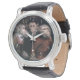 Uhr, Vintage Männeruhr mit schwarzem Lederarmband