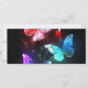 Drei helle, rote, lila, grüne, strukturierte Nachtschmetterlinge auf schwarz-leuchtendem Hintergrund.