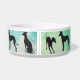 Drei italienische Greyhound schwarze Silhouetten auf blau/grün/weiß Hintergrund.