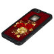 Die Komposition von zwei kunstvoll bemalten rote Rosen und einer goldenen Rose, mit Gold, Juwel Blätter auf texturierten Hintergrund verziert.