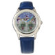 Kinderuhr aus Edelstahl mit blauem Lederarmband