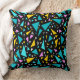 Dreiecke blaugelbe Farben auf schwarzem Hintergrun Kissen