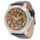 Die Armbanduhr dieser Männer hat ein Schwarzes Geschichtsbild aus Dreiecken und Rechtecken in Gold, Rot, Grün und Schwarz, die ein Muster bilden.