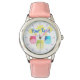 Kinderuhr aus Edelstahl mit rosa Lederarmband