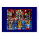 Dieses Plakat ist eine Wiedergabe des Dreiheits-befleckten Glasfensters, das für das Zuhause von Bikram Choudhury bestimmt ist und hergestellt ist. Es wird aus drei Buntglasplatten - Lord Brahma, Lord Vishnu und Lord Shiva verfasst.
