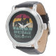 Uhr, Vintage Männeruhr mit schwarzem Lederarmband