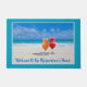 Herzlich willkommen in der tropischen Szene. Zwei Cocktails liegen auf dem Sand des Strandes, hinter dem tropisch blaues Wasser steht. Passen Sie den Text am unteren Rand des Bildes an, um Gäste zu "empfangen", oder verwenden Sie die Vorlage für den Familiennamen. Ein türkisblauer Rahmen umrahmt das Design. Wählen Sie eine Größe aus.
