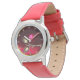 Uhr, Kinderuhr aus Edelstahl mit rosa Lederarmband