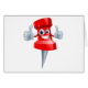Ein roter glücklicher roter niedlicher Stoß-Buttonmann, der ein Doppeltes gibt, greift oben ab