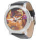 Uhr, Vintage Männeruhr mit schwarzem Lederarmband