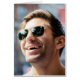 Ein Mann in Brille lächelt und lacht. Diese Karte ist eine sarkastische Art, jemanden loszuwerden
