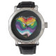 Uhr, Vintage Männeruhr mit schwarzem Lederarmband