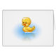 Eine sehr süße kleine gelbe Ente, die in das Wasser schwimmt.