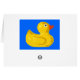 Einfache grafische Illustration einer niedlichen Cartoongelbente in der Anmerkungskarte des blauen Wassers. Diese Ente ist das Bild, das auf verschiedenen Geschenken und Produkten verfügbar ist. Fertigen Sie besonders an und wählen Sie Ihre eigene Entenhintergrundfarbe oder addieren Sie Text, wenn Sie brauchen.