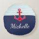 Dunkelblauer personalisierter Text-nautischentwurf Rundes Kissen