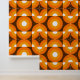 Dieses Design zeichnet sich durch ein atemberaubendes zeitgenössisches Muster geometrischer Kreise und Quadrate in dunkelgelb, hellorange und weiß, Set vor dunkelbraunem Hintergrund aus. Es strahlt ein verziertes, elegantes und stilvolles Ambiente aus und eignet sich somit perfekt für die extravagante künstlerische Mode, die künstlerische Modediva, den beliebten angesagten Trendsetter, den Vintagen Retrokünstler und den Liebhaber abstrakter geometrischer Motive.