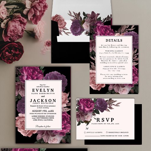 Dark moody watercolor floral Black weddingDesignt von Khushboo Asif