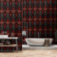 Barockrot | Halloween Decor. Verbessern Sie Ihren Platz mit meinem dunkelroten und schwarz-barocken Gotischen Bögen Wallpaper. Dieses mystische Design umfasst verflochtene gotische Bögen, die von Draculas Schloss inspiriert wurden, und romantische gotische Romane wie "Die Maske des Roten Todes". Ideal für eine Spielwand in einem Mädchenzimmer, einem gotischen Boudoir oder als spukhafte Kulisse für ein Halloween-Party. Die herausnehmbare Tapete ist ideal, um jedem Raum oder Event ein dunkles, romantisches Ambiente zu verleihen.