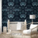Dunkle Akademie Aquamarin dekorative Blüte Tapete
