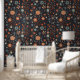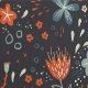 Moderne blumengeschmückte Wildblume in gebranntem Orange und Blau auf dunklem Hintergrund. Originelle Kunst von Nic Squirrell.