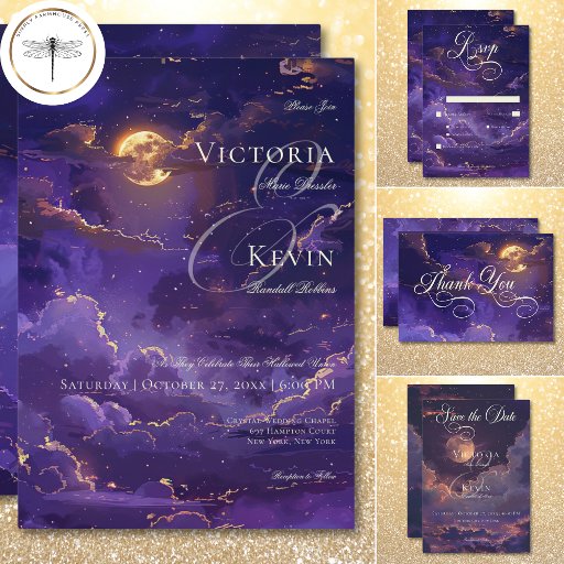 Dark Moody Purple & Gold Moonlit Clouds WeddingDesignt von Kathe Santillo