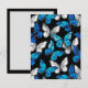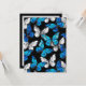 Realistisches, blaues und weißes Schmetterlingsmuster auf schwarzem Hintergrund.