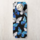 Realistisches, blaues und weißes Schmetterlingsmuster auf schwarzem Hintergrund.