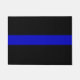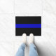 Dünne Blue Line-Tür Mat.The dünnes Blue Line ist ein mündlicher Ausdruck für Polizeiaufgebote. Sie kann sich auf die Polizei als "Linie" beziehen, die zwischen gutem und Übel stehend ist (Bürger und Täter) oder kann sich auf die "Linie" beziehen, die die Polizei als in der Ingruppe von jeder sonst trennt (mit den positiven, negativen oder Mischkonnotationen, abhängig von der Person, die den Ausdruck verwendet). Addieren Sie Text .customize und personifizieren Sie, wenn Sie gewünscht werden.