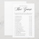 Mit unserer eleganten und modernen Shoe Game Karte können Sie Ihre Ehepaare mit der Dusche oder Hochzeitsfeier verwöhnen. Dieses minimalistische Schwarz-Weiß-Design mit raffinierter Kalligraphie macht es zu einer stilvollen Ergänzung zu Ihrem Event. Dieses Hochzeitsspiel ist perfekt für Braut und Bräutigam geeignet und bietet Ihnen eine Touch an Spaß und Unterhaltung.