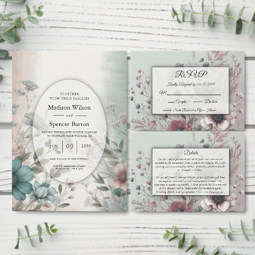 Dusky Petals und Soft Serenity Floral RSVP Karte