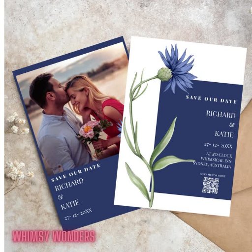Dusty blue Bold Floral stilvoller Qr Code wedeln I Einladung