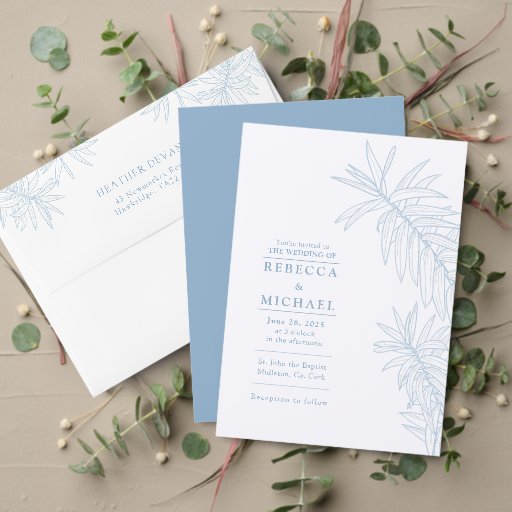 Dusty Blue Simple Botanical Leaves Wedding Designt von Amour Paperie