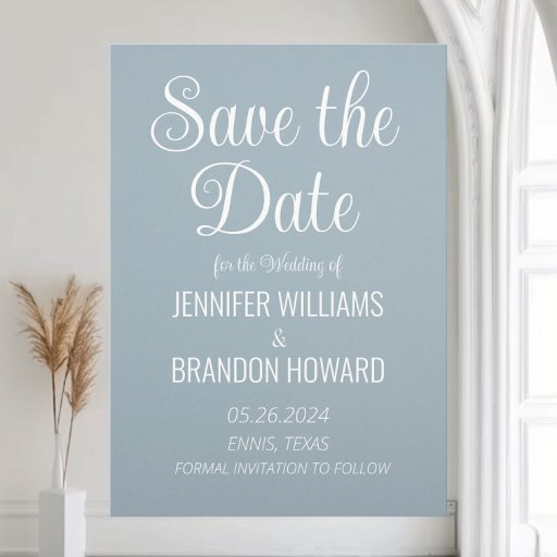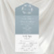 Dusty Blue, elegant, rustikal, modern gefaltete Ehe, Hochzeit alle in einer Einladung. Das dreifache, budgetäre Set. Sie können es mit Ihren eigenen Daten personalisiert.
