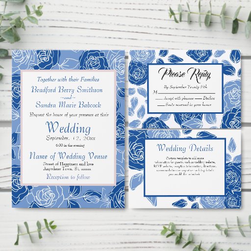 Blue Floral Stylish Rose Chic Simple WeddingDesignt von Sandy Closs