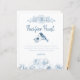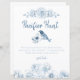 Behalt den Gästen dieses elegante, staubige Jagdspiel-Schild mit blauen Schnullern. Dieses Schild mit zarten Blumen und einer süßen Vogelillustrierung verleiht Ihrem Baby-Dusche Charme und führt Sie durch ein unterhaltsames und interaktives Spiel. Vollständig anpassbar, um Ihr Thema zu erfüllen.