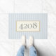 Fügen Sie Ihrer Haustür eine Touch klassischen Charmes hinzu! Dieses einfache, klassische blau-weiße Streifen Muster ist zeitlos. Diese Türmatte kann mit einer Straßenadresse, Nachnamen oder einem besonderen Sprichwort - alles was Sie mögen - angepasst werden! Schöne auf ihrer eigenen oder Schicht mit größeren Türmatte in einem unserer koordinierenden Drucke für extra Charme. Das ist ein großartiges Geschenk für die Hauswärmung! Traditionelle, klassische, Streifen, blau, weiß, gedämpft, weich, neutral, Hütte Stil, Englisch Land, Küste, einfach, Teppich, Brauch, personalisiert, Muster, Hauswärmung, Geschenk.