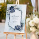 Dusty Blue und Navy Floral Elegante Hochzeit Menükarte