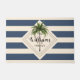 Stilvoll an der Eingangstür oder im Innenhof mit diesem dunkelblauen weißen Streifen Tropical Beach Monogram Doormat. Das elegante Design ist mit einem staubigen blau-weiß gestreiften Hintergrund und einer Palme in der Mitte gestaltet. Die Initialdatei der Familie ist hellgrau und der Name ist in schwarzer Schriftzeichen zu finden. Klicken Sie auf Vorlage personalisieren und folgen Sie den Anweisungen.