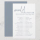 Erhöhen Sie Ihr Brautparty mit dem Dusty Blue & White Würde She Rather Game - eine einfache, raffinierte Drehung für ein klassisches Party-Spiel. Dieses stilvolle Spiel bringt eine Touch Eleganz in Ihr Brautparty. Mit seiner puristischen, minimalistischen Ästhetik ergänzt es nahtlos jedes moderne, schicke Brautparty. Aber lass dir nicht das raffinierte Aussehen, das du tust - dieses Spiel ist voll von lustigen, zum Nachdenken anregenden Fragen, die sicher alle zum Lachen, Chatten und Kleben bringen werden. Egal, ob der Gast der Ehrenfrau Liebe Mode, Essen oder Romantik, die vielseitigen Fragestellungen werden zu allen ihren Interessen sprechen. Überraschen Sie Ihr Brautparty mit einer unvergesslichen Dusche, die Stil und Substanz in Einklang bringt.