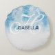 Dusty Blue Winter Script Calligraphy Monogram Round Pillow | Bestes Geschenk für sie