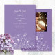 Dieses schlichte, weiße Blumenmuster auf staubigen, lila Hintergrund ist ein minimales und modernes Programm für Ihren Hochzeitstag. Personalisieren Sie alle Informationen, einschließlich Einzelheiten zur Zeremonie und der Begleiter