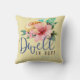 Hübsches, inspirierend Kissen | "Wohnen in Hoffnung." Die Grundlage der Psalmen 16:9 Bibelverse begleitet von einem schönen Blumenstrauß auf hellgelben Hintergrund.