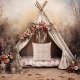 Ein Vintages, weiches rosa Rosenmuster mit cremig weißen Blüten auf braunen Reben