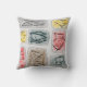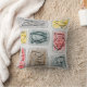 Eames inspirierte Kissen-Entwurf, die Mitte des Jahrhundertsarthand, die vom Künstler gezeichnet wurde. Blau, rot, grün, Gold und Braun bilden Sie die Farben in diesem Mitte des Jahrhundertsentwurf, der nah von einem Muster des Vintagen barkcloth kopiert wird.