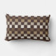 A checkerboard pattern with alternating dark brown, light brown, and beige squares, creating a sense of rhythm and visual depth.