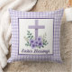 Easter Blessings Cross with Flowers Purple Gingham Kissen