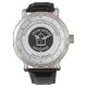 Diese schicke, kundenspezifische Uhr ist personalisiert mit dem Logo Ihres Immobilienunternehmens in der Mitte. Fügen Sie Ihrem Anwesen Firmennamen und Agent zu diesem modernen Design für ein stilvolles, individuelles Armbanduhr-Geschenk hinzu.