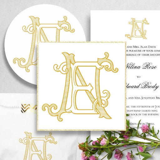 EDITABLE FARBEN EN Monogramm NE Einladung