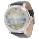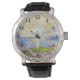 Uhr, Vintage Männeruhr mit schwarzem Lederarmband