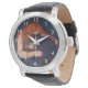 Uhr, Vintage Männeruhr mit schwarzem Lederarmband